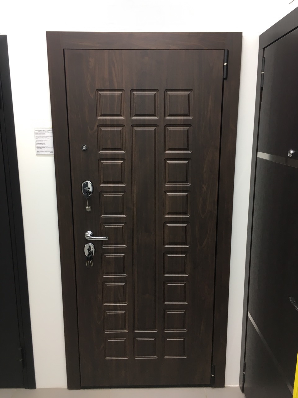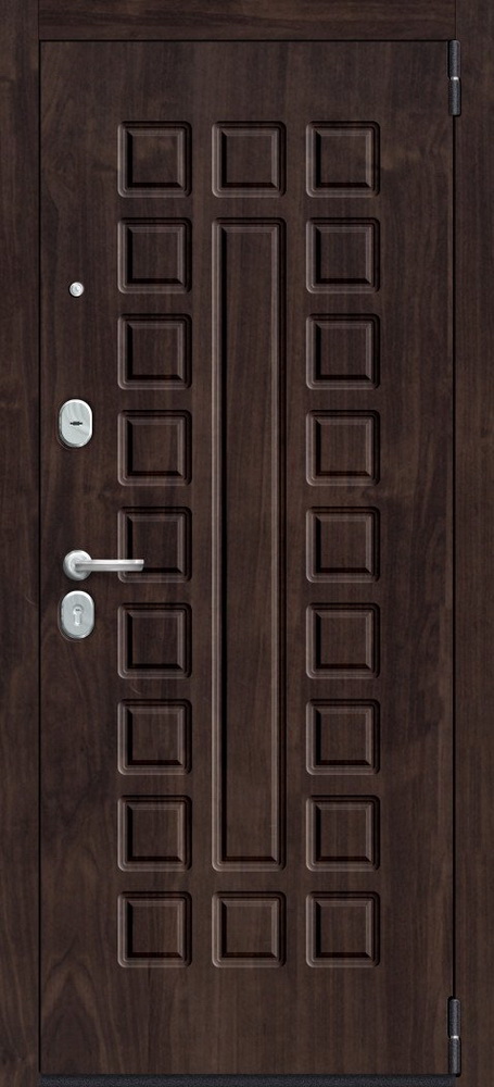 ОписаниеДверной стальной однопольный блок с открыванием наружу. Произведен на уникальных автоматизированных линиях и роботизированных комплексах ведущих зарубежных производителей. Поставляется с правым и левым открываниемКачествоСертифицирован для РФ по ГОСТ 31173-2016. Наивысшие классы по эксплуатационным характеристикам (1) и прочности (М5). Сертификат POCC RU.AM05.H03178ОсобенностиЦельногнутая конструкция полотна и закрытый цельнокатаный профиль коробки. Стабильно точные геометрические показатели, которые обеспечиваются высокой степенью автоматизации и роботизации производстваМарка сталиВысококачественная конструкционная углеродистая сталь (08пс)ОкраскаИндустриальная полиэфирная порошковая краска с предварительной антикоррозийной обработкой (фосфатированием)Отделка снаружиДекоративная панель с возможностью замены. Толщина 10 мм, ВинилОтделка внутриДекоративная панель с возможностью замены. Толщина 22 мм, Эко Шпон (Германия, Южная Корея), зеркало "Reflex"РегулировкаДверь укомплектована эксцентриком, правильная регулировка которого обеспечивает легкость открывания двери и беспрепятственную работу замковых механизмовУплотнениеТри контура высококачественного EPDM-уплотнителя (Швеция)УсилениеЧетыре вертикально-горизонтальных усиливающих омега-профиля (ребра) создают единую монолитную жесткость и прочность конструкции. Сверхпрочная конструкция «6x2» - двойная толщина стали профиля полотна, двух контуров коробки, в зонах замка и петель. Дополнительную стойкость ко взлому обеспечивают два противосъемных штыря с цинковым покрытием (для защиты металла от коррозии)Утепление полотнаВнутри полотна установлена конструкционная теплоизоляционная панель SIP (Structural Insulated Panel), которая не только обеспечивает необходимую теплоизоляцию, но и придает дополнительную жесткость и прочность дверному блокуКреплениеДвери крепятся анкерными болтами через коробку (8 отверстий) или с использованием монтажных пластин (6 шт. в комплекте)Внимание!Дверь предназначена для установки в тамбуре или под защитным козырькомТолщина полотна/коробки, мм90/90Толщина стали полотна/коробки, мм1.2Ширина наличника, мм60Размер проема в свету, см193/76Масса нетто, кг101.3Петли140*20 мм на опорном подшипнике, обеспечивают открывание на 180°, 2 штНижний замокBorder G 4-3 Э с 3 ригелями диаметром 16 мм, 4-й (высший) классВерхний замокBorder G 8-6 Э с 3 ригелями диаметром 16 мм, 4 ключа 97 мм в комплекте, 4-й (высший) классЦилиндрBravo AF-100-50/50 ключ-фиксатор C Хром, 5 ключей в комплектеРучкаA-493 C ХромНочная задвижкаЗ-60 НикельГлазок6016/50-90 CR Хром со шторкой и углом обзора 180°ПрочееЗаглушки для монтажных отверстий, чашки для противосъемных штырей