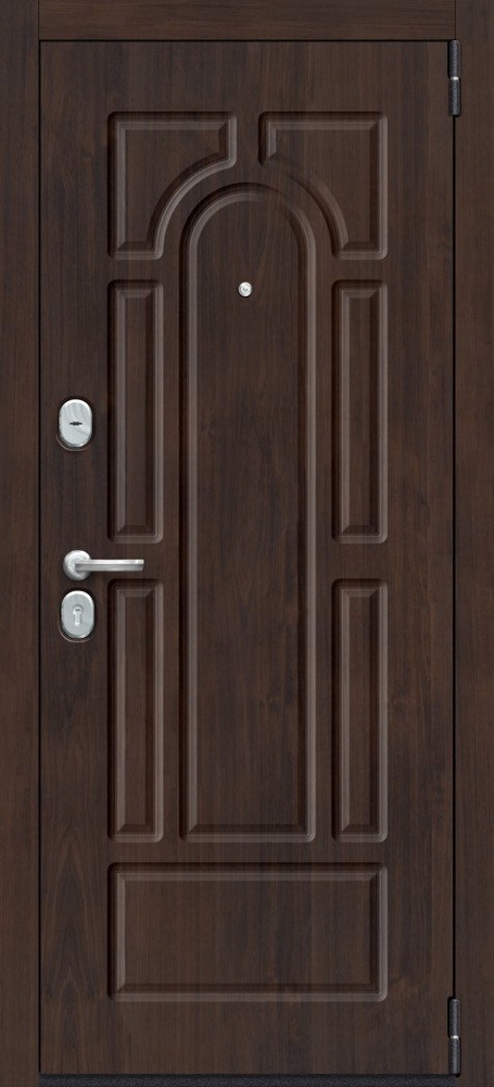 ОписаниеДверной стальной однопольный блок с открыванием наружу. Произведен на уникальных автоматизированных линиях и роботизированных комплексах ведущих зарубежных производителей. Поставляется с правым и левым открываниемКачествоСертифицирован для РФ по ГОСТ 31173-2016. Наивысшие классы по эксплуатационным характеристикам (1) и прочности (М5). Сертификат POCC RU.AM05.H03178ОсобенностиЦельногнутая конструкция полотна и закрытый цельнокатаный профиль коробки. Стабильно точные геометрические показатели, которые обеспечиваются высокой степенью автоматизации и роботизации производстваМарка сталиВысококачественная конструкционная углеродистая сталь (08пс)ОкраскаИндустриальная полиэфирная порошковая краска с предварительной антикоррозийной обработкой (фосфатированием)Отделка снаружиДекоративная панель с возможностью замены. Толщина 10 мм, ВинилОтделка внутриДекоративная панель с возможностью замены. Толщина 10 мм, Эко Шпон (Германия, Южная Корея)РегулировкаДверь укомплектована эксцентриком, правильная регулировка которого обеспечивает легкость открывания двери и беспрепятственную работу замковых механизмовУплотнениеТри контура высококачественного EPDM-уплотнителя (Швеция)УсилениеЧетыре вертикально-горизонтальных усиливающих омега-профиля (ребра) создают единую монолитную жесткость и прочность конструкции. Сверхпрочная конструкция «6x2» - двойная толщина стали профиля полотна, двух контуров коробки, в зонах замка и петель. Дополнительную стойкость ко взлому обеспечивают два противосъемных штыря с цинковым покрытием (для защиты металла от коррозии)Утепление полотнаВнутри полотна установлена конструкционная теплоизоляционная панель SIP (Structural Insulated Panel), которая не только обеспечивает необходимую теплоизоляцию, но и придает дополнительную жесткость и прочность дверному блокуКреплениеДвери крепятся анкерными болтами через коробку (8 отверстий) или с использованием монтажных пластин (6 шт. в комплекте)Внимание!Дверь предназначена для установки в тамбуре или под защитным козырькомТолщина полотна/коробки, мм80/90Толщина стали полотна/коробки, мм1.2Ширина наличника, мм60Размер проема в свету, см193/76Масса нетто, кг94.5Петли140*20 мм на опорном подшипнике, обеспечивают открывание на 180°, 2 штНижний замокBorder G 4-3 Э с 3 ригелями диаметром 16 мм, 4-й (высший) классВерхний замокBorder G 8-6 Э с 3 ригелями диаметром 16 мм, 4 ключа 97 мм в комплекте, 4-й (высший) классЦилиндрBravo AF-100-50/50 ключ-фиксатор C Хром, 5 ключей в комплектеРучкаA-493 C ХромНочная задвижкаЗ-60 НикельГлазок6016/50-90 CR Хром со шторкой и углом обзора 180°ПрочееЗаглушки для монтажных отверстий, чашки для противосъемных штырей